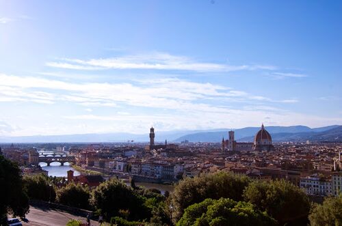 フィレンツェの中心地から少し離れたところにある高台・ミケランジェロ広場.ここからフィレンツェの街並を眺めると感動!!!絶景です.ドゥオーモ,ジョットの鐘楼,ヴェッキオ橋など全てを一望できる贅沢な場所です.