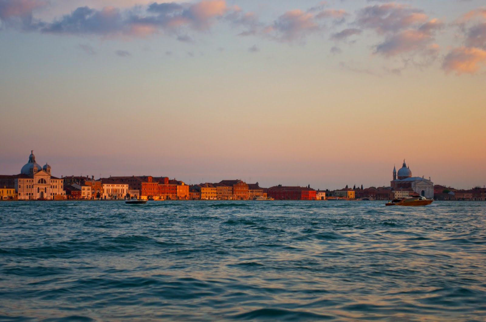 夕日の中のサンタ・マリア・デッラ・サルーテ教会.絵画を見ているのか,リアルな風景を見ているのかわからなくなります.