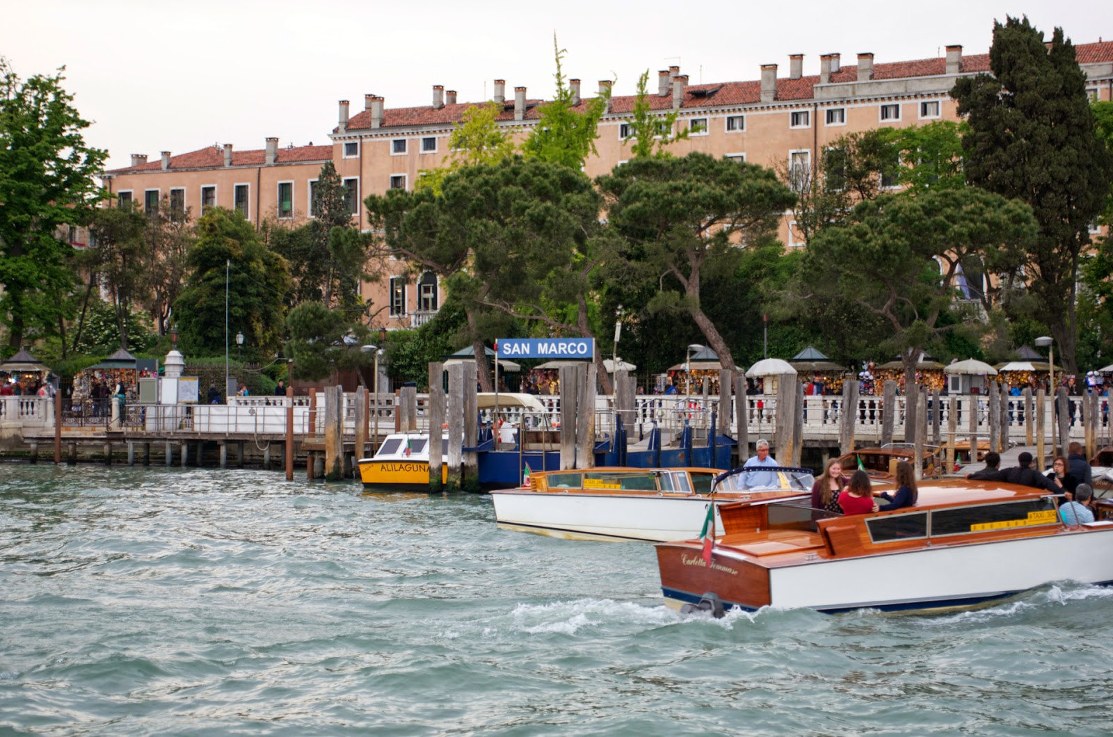 ヴァポレットから見たサン・マルコ駅.サン・マルコ駅は駅名が見やすかったです。